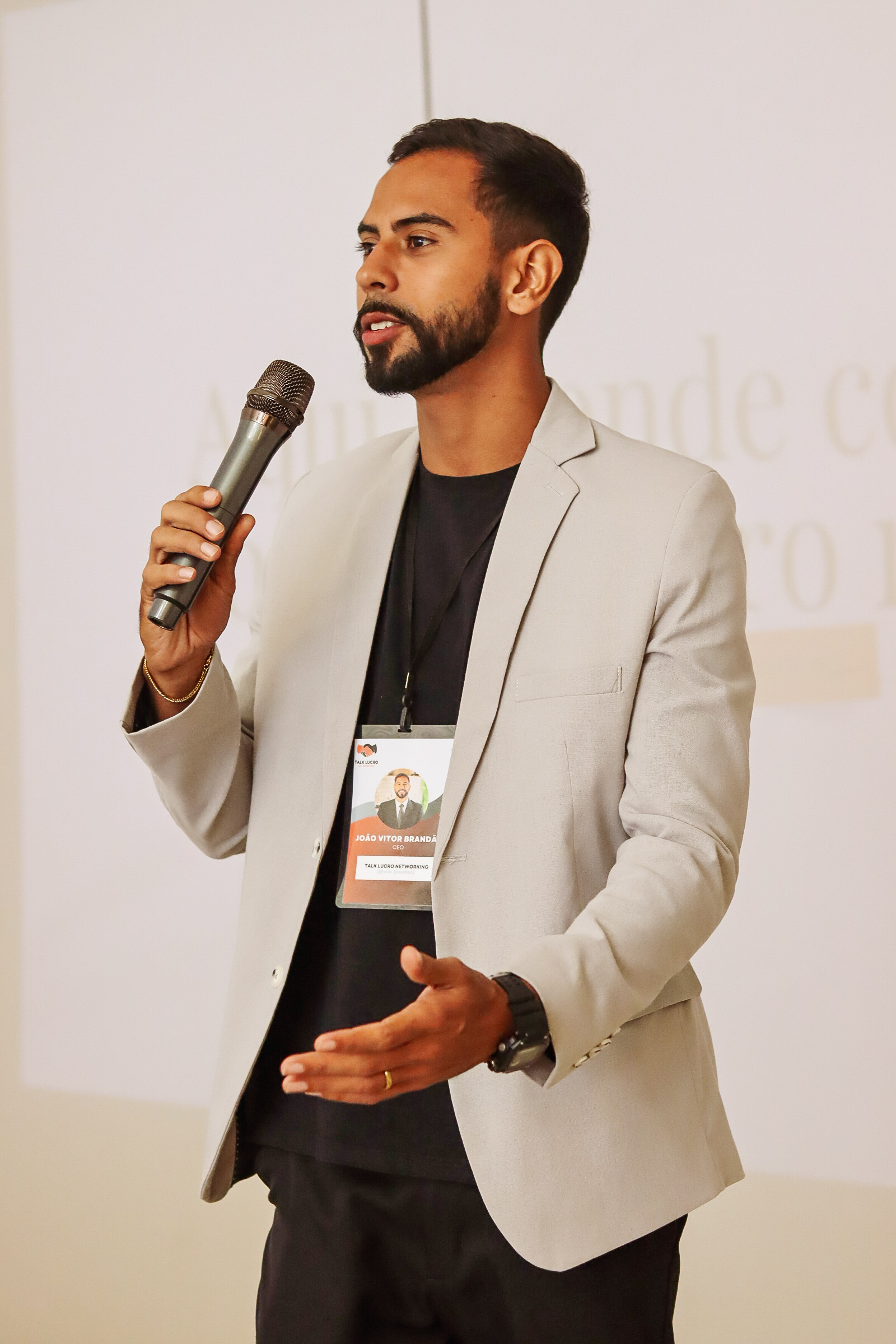 João Vitor com microfone em evento